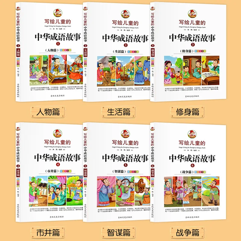 6Books/Set Chinese Idiom Stories for Children Learning Characters Mandarin with Pinyin Story Readin
