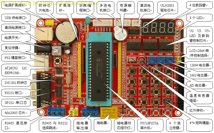 PIC Development Board Single Chip Microcomputer Learning Board PIC16F877A Development Board Experim